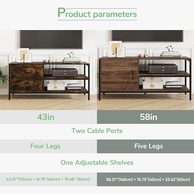 About This Wood 【PROPER SIZE】19.68” H × 15.75” W × 43.31” L. This TV table stand fits flat/curved screen TVs...