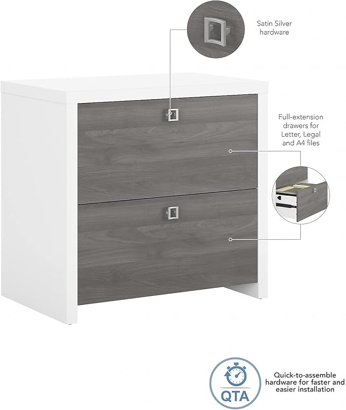 Office by kathy ireland Echo 2-Drawer Lateral File Cabinet, Letter/Legal, Pure White/Modern Gray, 32-inch (KI60502-03)