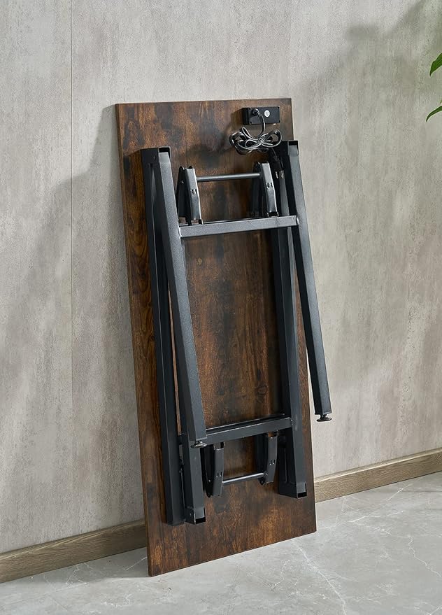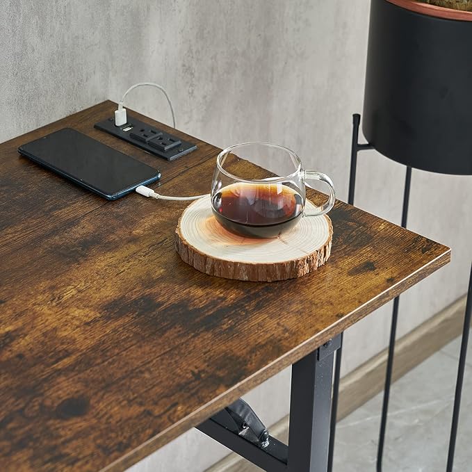 Frylr Foldable Desk 31.5'',Small Desks for Small Spaces with Power Outlet and USB Ports Charging Station,folding computer desk,Home Office Collapsible Desk,Stable Metal Frame,Rustic Brown