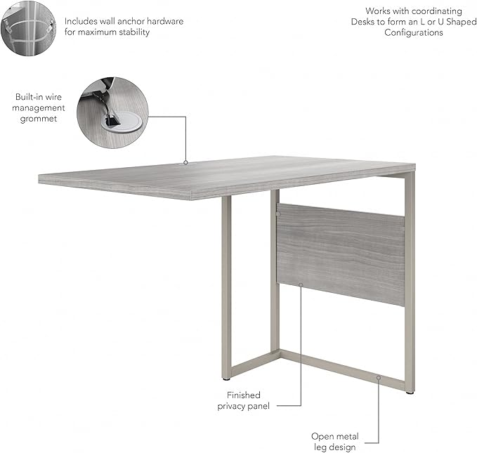 Bush Business Furniture Hybrid Desk Return/Bridge, 42W x 24D, Platinum Gray