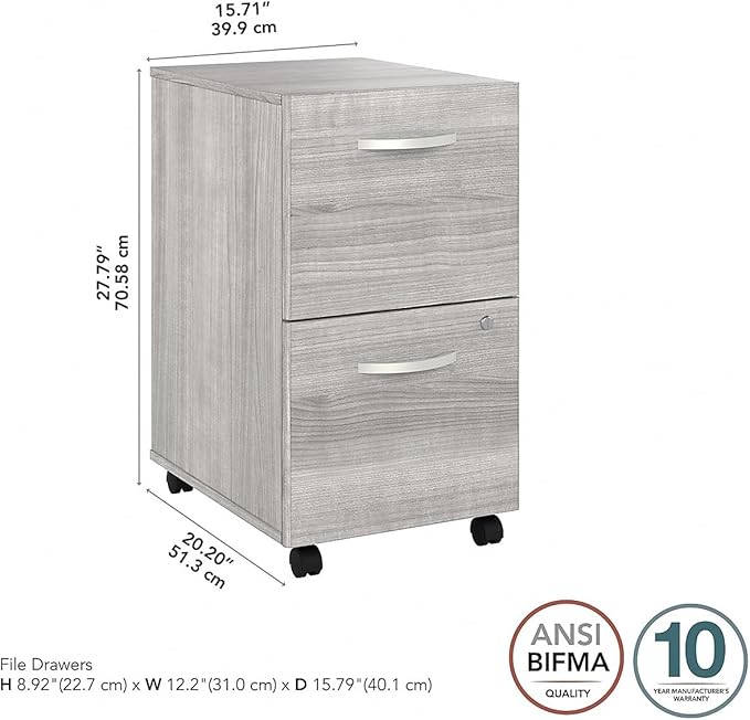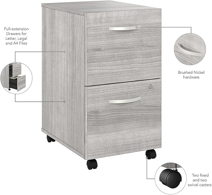 Bush Business Furniture HYF116PGSU-Z Hybrid 2-Drawer Mobile File Cabinet, Letter/Legal, Platinum Gray, 20-Inch,