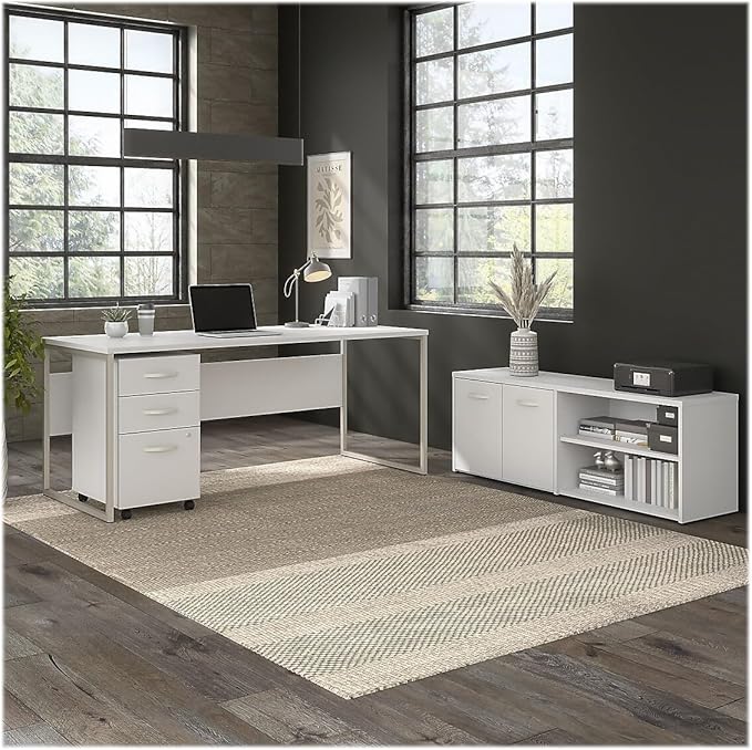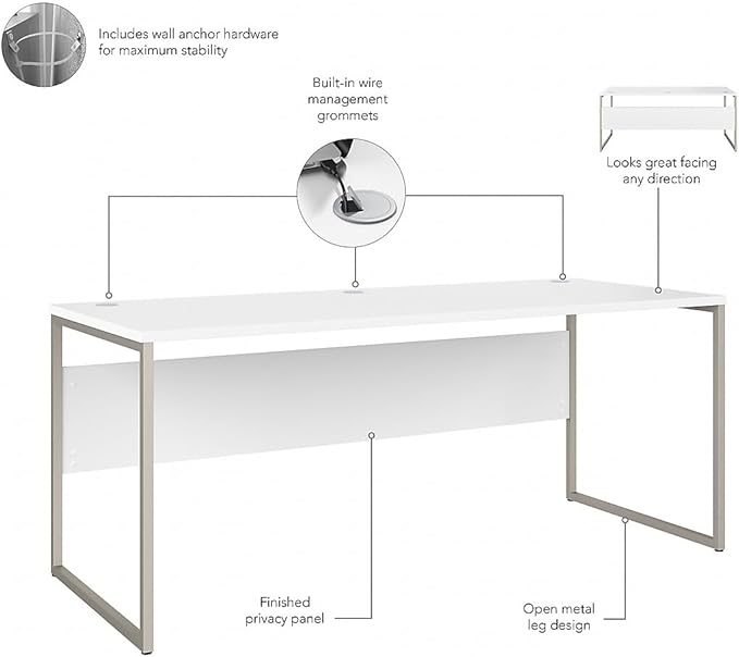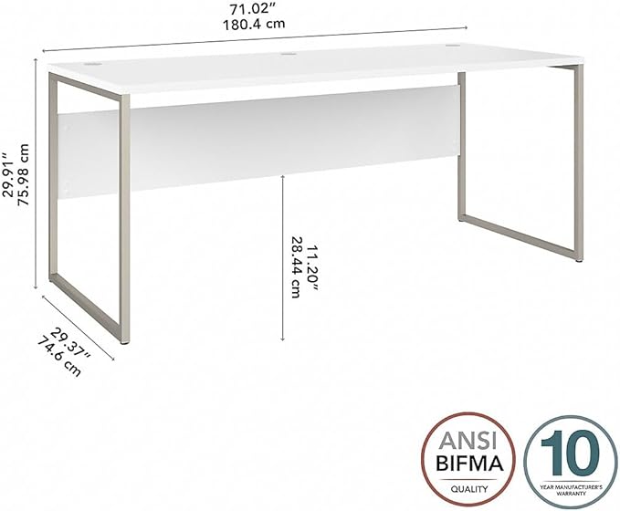 Bush Business Furniture Hybrid 72W x 30D Computer Table Desk with Metal Legs in White