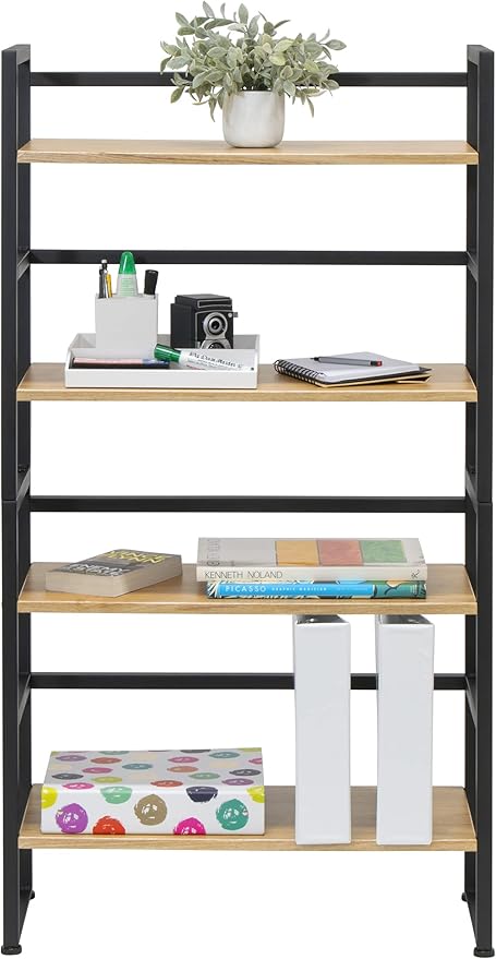 Calico Designs Ashwood 4-Tier or 2-Tier Stackable Bookshelf (1 Set),Graphite Black/Ashwood,Rectangular