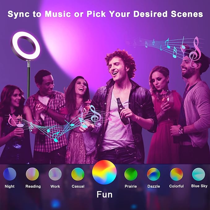 About This 【Upgraded Independent Double-sided Lighting】Adopting double-sided lighting design, Mukuxin led floor lamp provides independent lighting for RGB mode and...