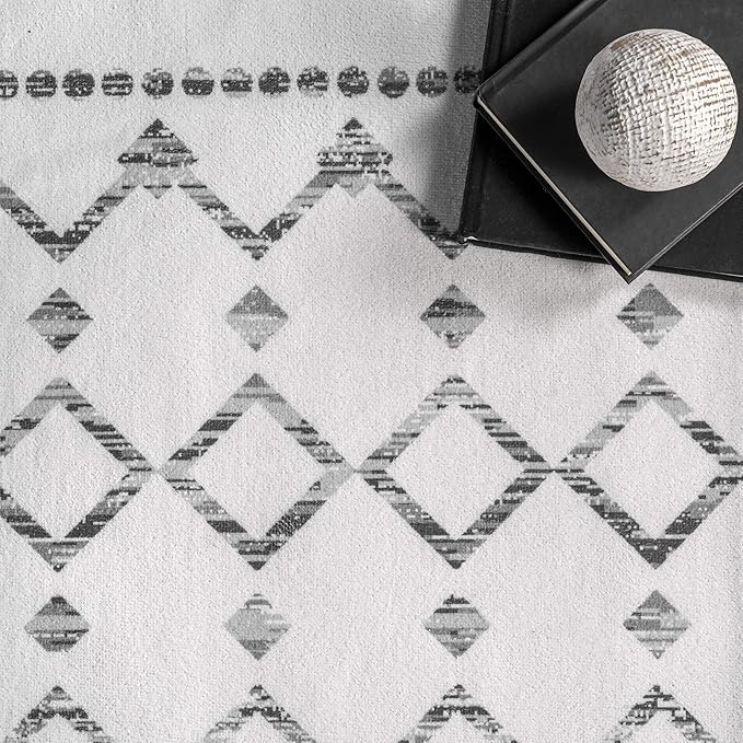 nuLOOM Moroccan Blythe Machine Washable Ultra Thin Area Rug, 8' Square, Grey