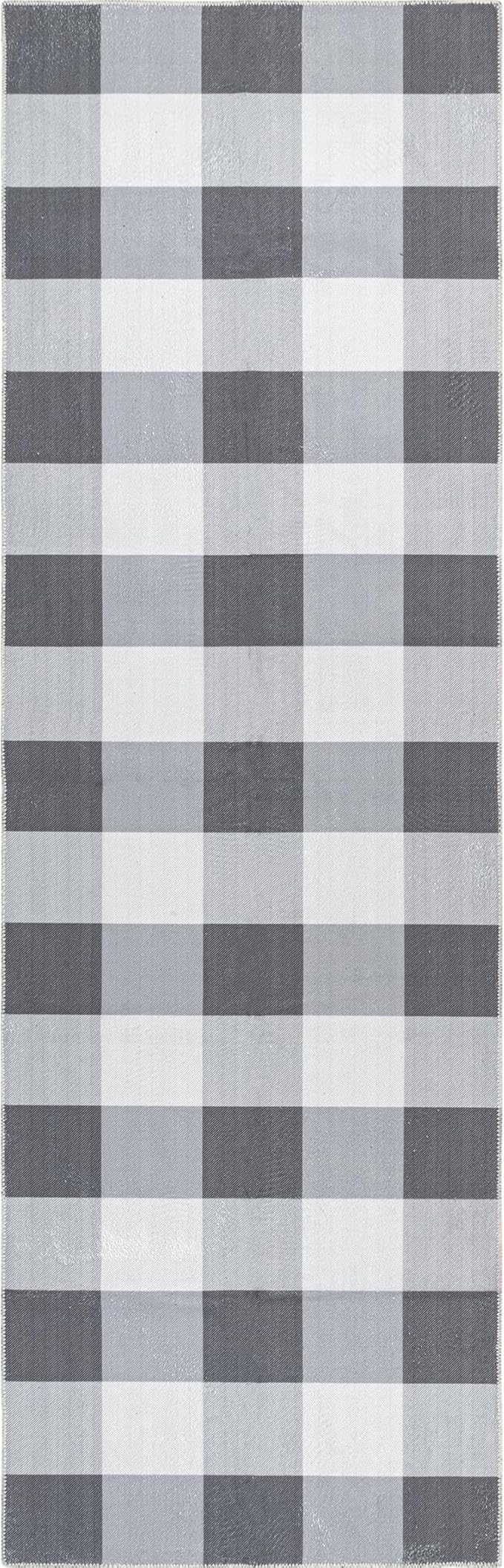 nuLOOM Lucy Machine Washable Farmhouse Buffalo Plaid Ultra Thin Runner Rug, 2' 6" x 12', Grey