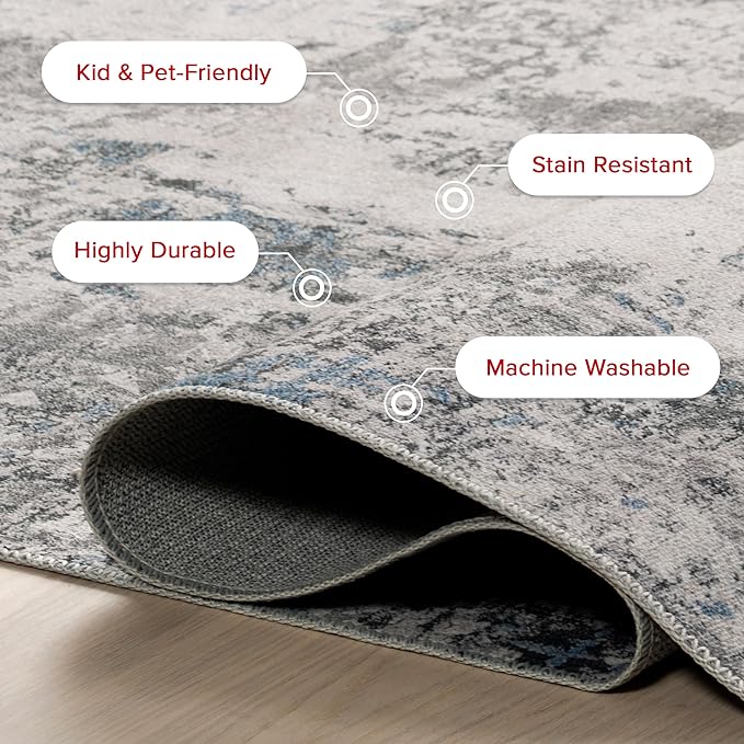 About This Stain-Resistant Material: Our machine washable rug is crafted from 100% Polyester that is stain-resistant, lightweight, and easy to...