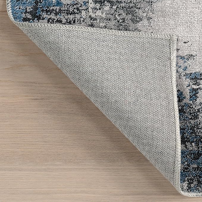 nuLOOM Dali Abstract 2x12 Machine Washable Runner Rug for Living Room Bedroom Dining Room Entryway Hallway Kitchen, Blue Grey/Ivory