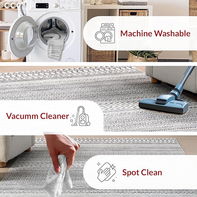 About This Stain-Resistant Material: Our machine washable rug is crafted from 100% Polyester that is stain-resistant, lightweight, and easy to...