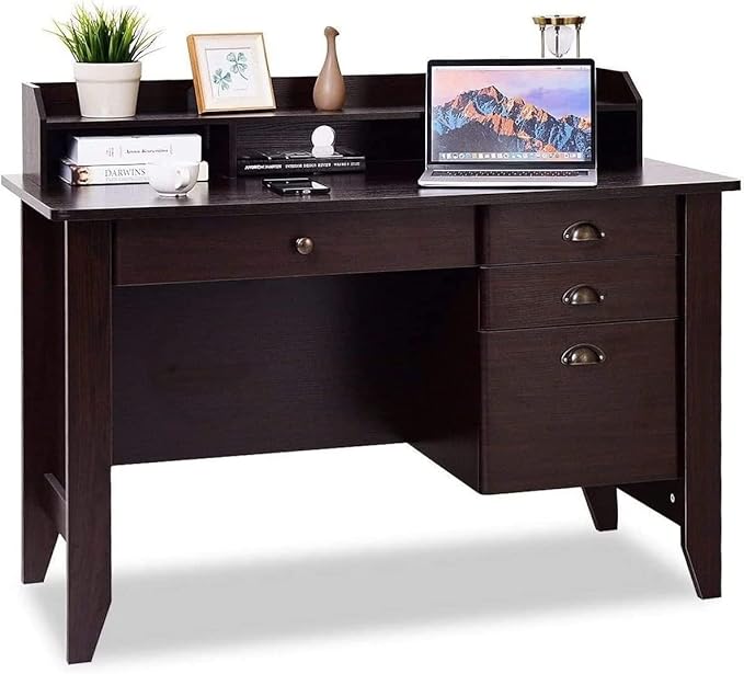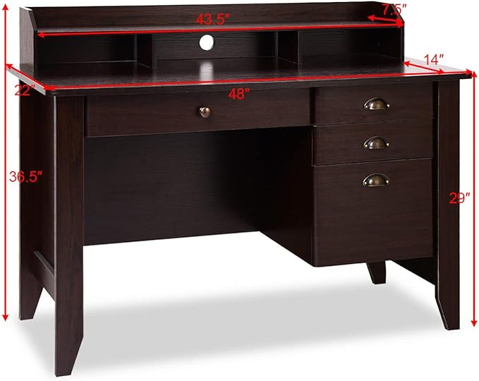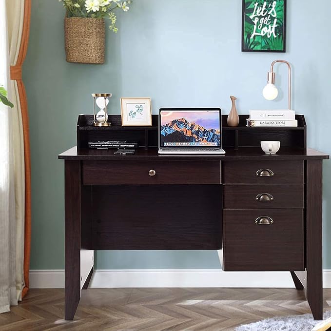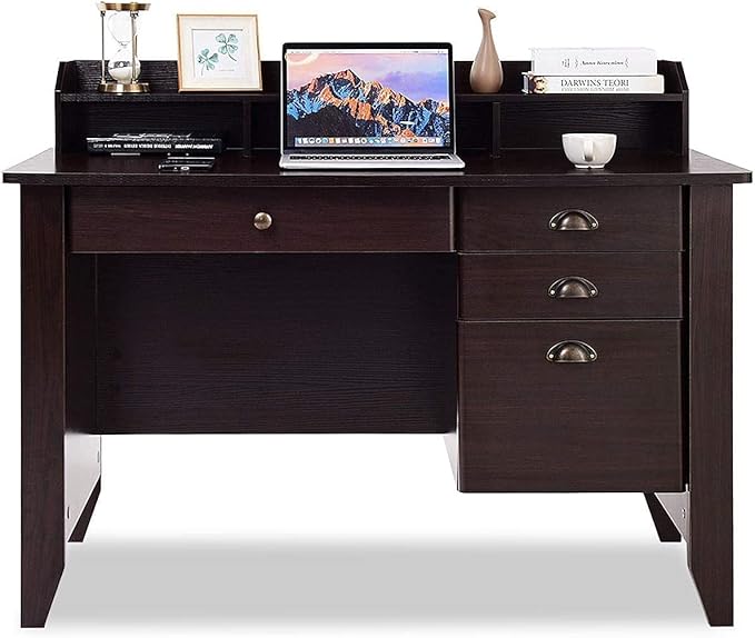 About This Ample Storage Space: Our wooden computer desk has 1 long slide-out drawer and 3 side drawers, giving you...