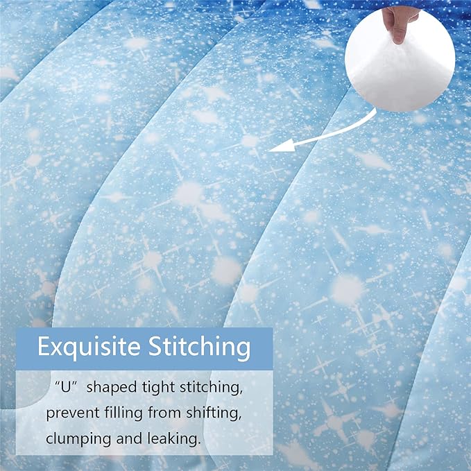 About This [Blue Glitter Design]:Blue gradient comforter with magic galaxy and twinkle stars design, full of heart and romance, deeply...