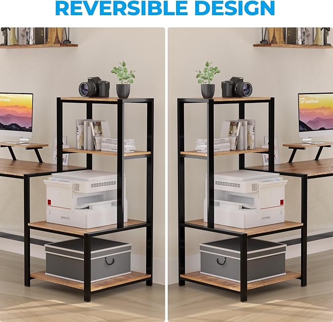 About This LARGE COMPUTER DESK WITH PRINTER SPACE: The office desk features 4 layers open-sided shelves. The middle shelf provides...