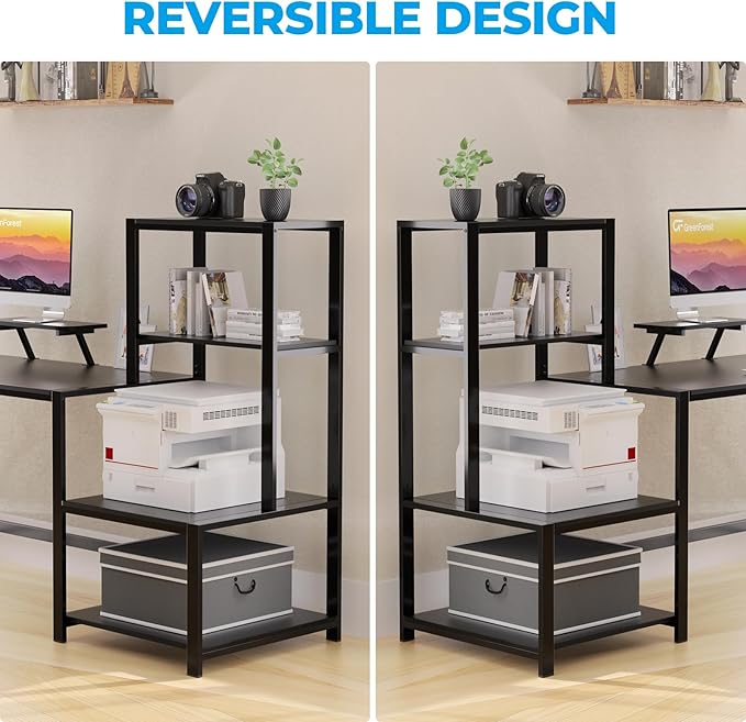 GreenForest Computer Desk 67 inch with Storage Printer Shelf, Reversible Gaming Home Office Desk Large Study Writing Table with Movable Monitor Stand and 2 Headphone Hooks for PC Working, Black