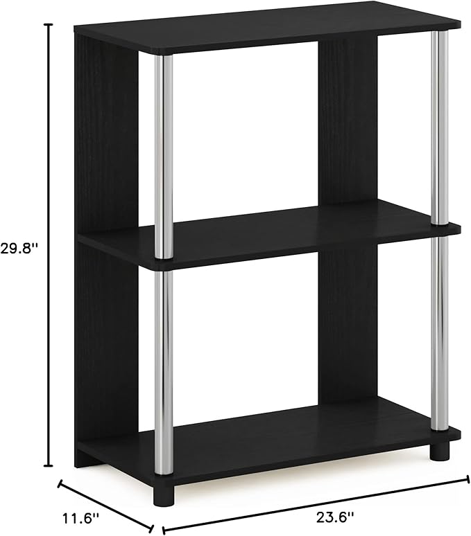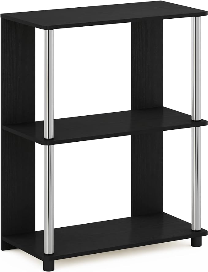 Furinno Jaya Simple Design 3-Tier Bookcase/Bookshelf/Display Rack with Stainless Steel Tubes, Americano