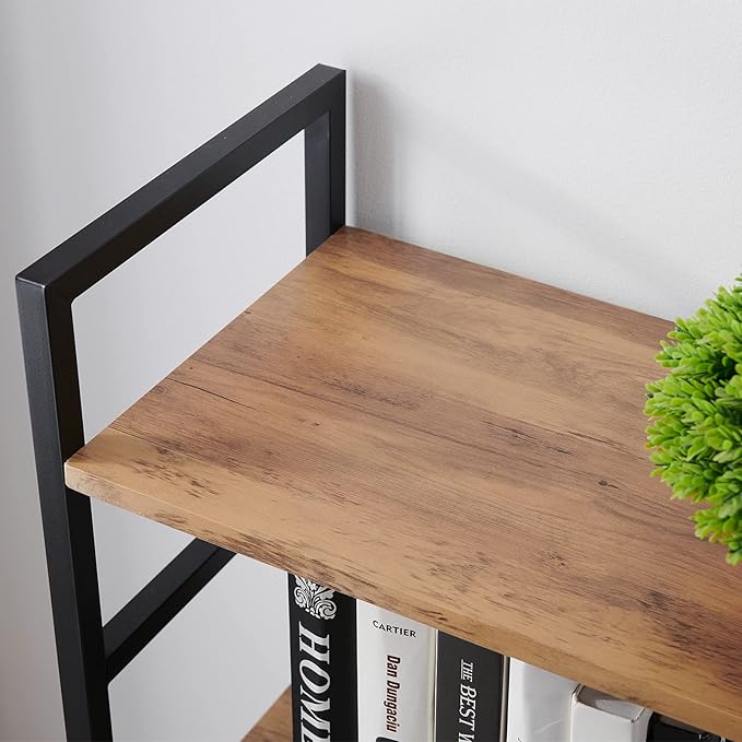 Bookshelf for Small Space, 3 Tier Wood Book Shelf and Bookcase with Metal Frame, Rustic Standing Unit Shelf Display Rack for Living Room/Home Office, Light Brown