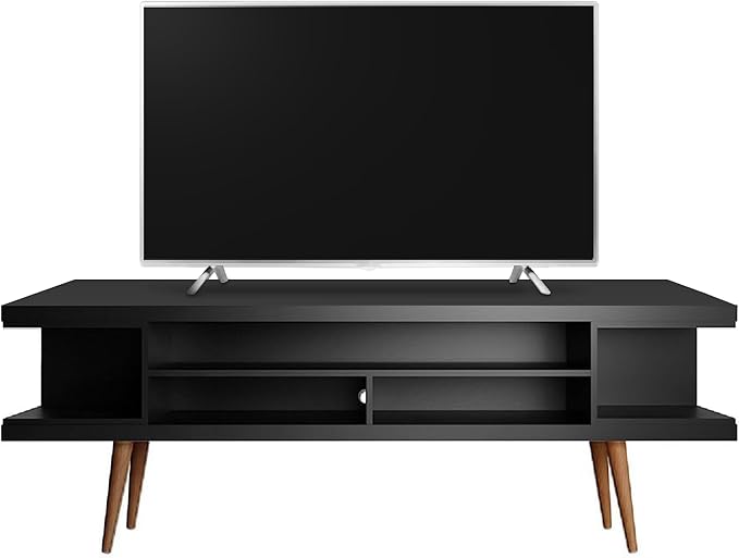 Manhattan Comfort Utopia 70.47" Freestanding Entertainment Center for Living Room, Mid Century Modern TV Stand with Shelves, Storage and Media Holes, Fits 65" Screens, 70.47 Inches, Black
