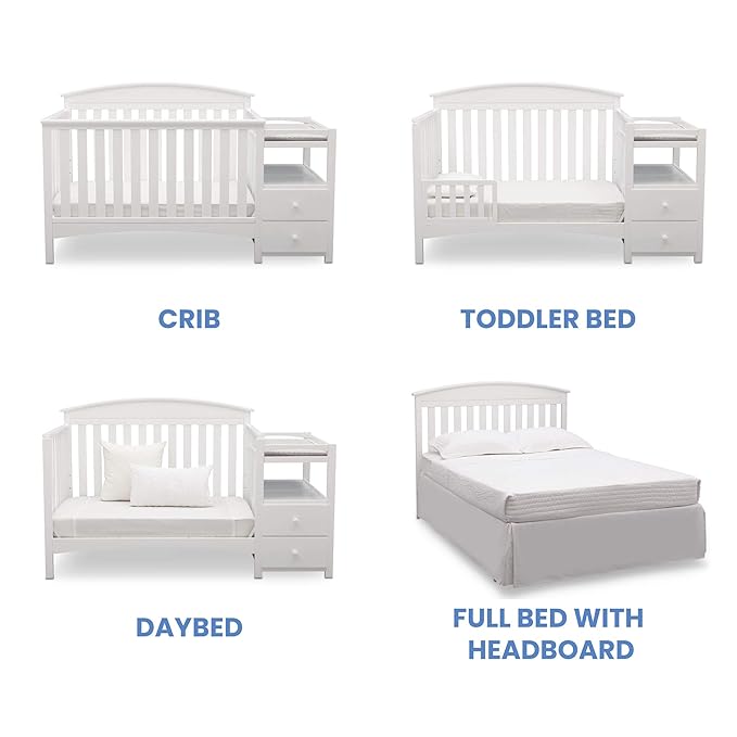 Delta Children Abby Convertible Crib 'N' Changer + Changing Pad and Cover [Bundle], Bianca