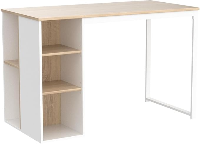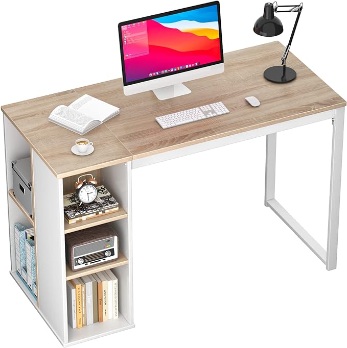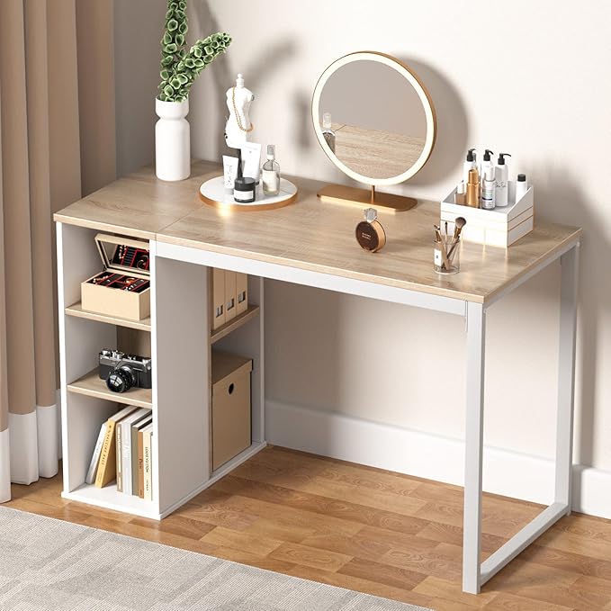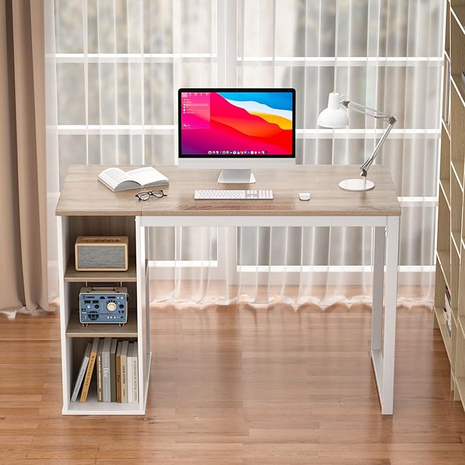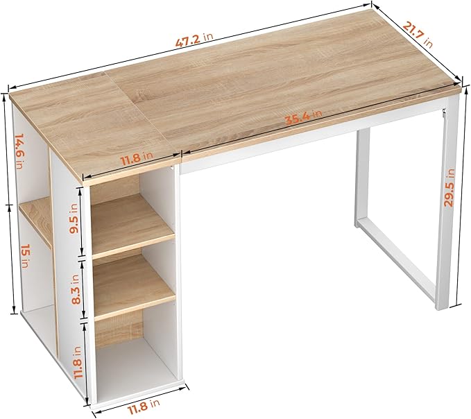 Coavas Computer Desk with Storage, Home Office Desk with Adjustable Shelves, Simple Style Writing Study Desk with Metal Frame, Modern Design PC Laptop Desk, 47 inch, Oak