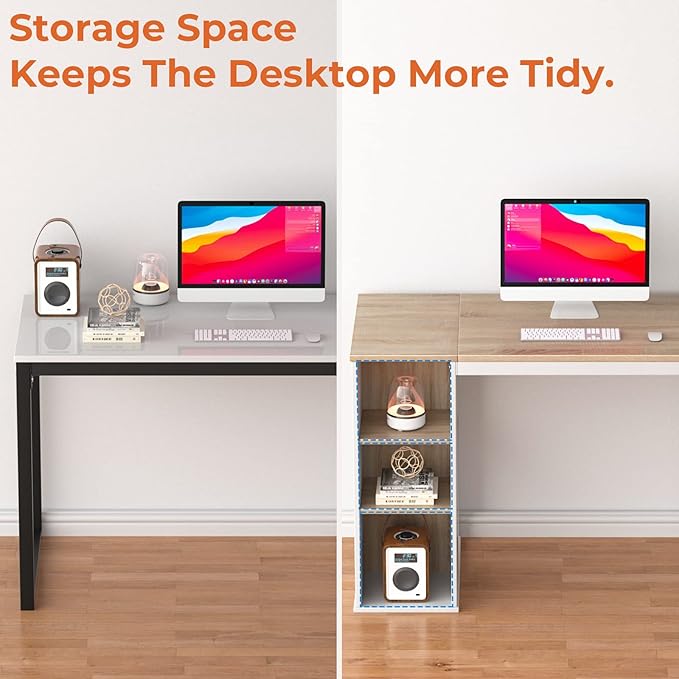 About This Computer Desk with Storage - The storage under computer desk offer ample space include 2 big open spaces...