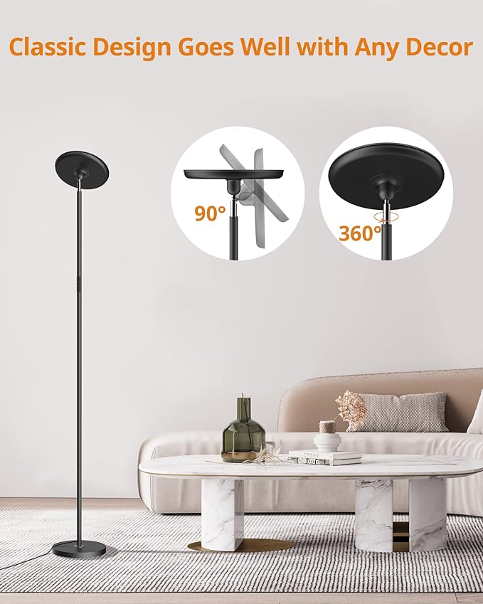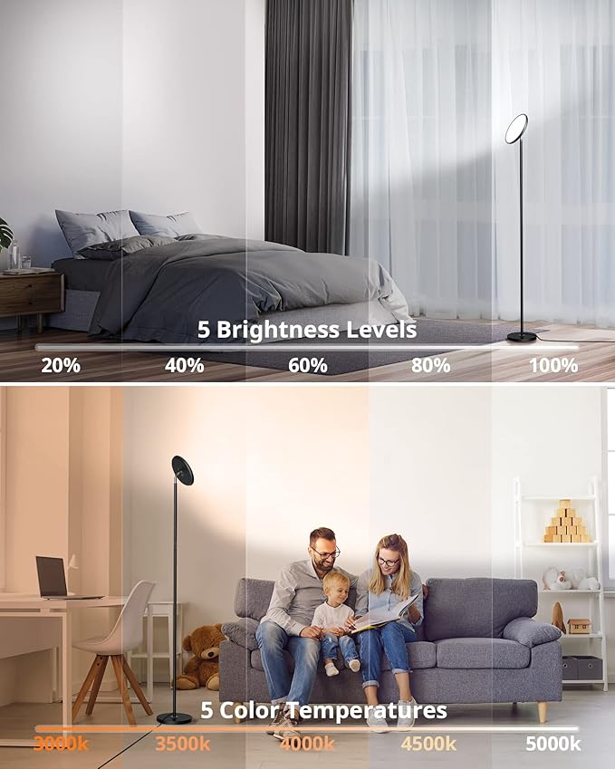 LEPOWER Bright Floor Lamp, LED Torchiere Floor Lamps for Living Room, 3500LM Standing Floor Lamp with 5 Color 5 Brightness, Tall Pole Light for Bedroom, Office Black