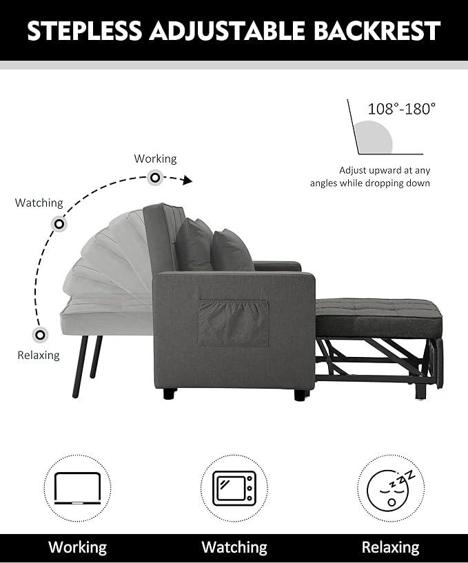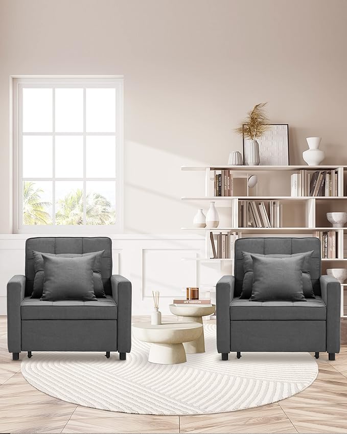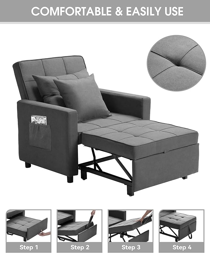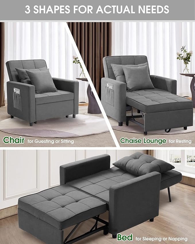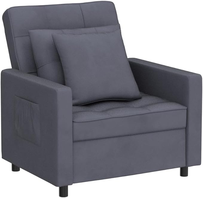 XSPRACER [UPDATED] Convertible Chair Bed, Sleeper Chair Bed 3 in 1, Stepless Adjustable Backrest, Armchair, Sofa, Bed, Fleece, Dark Gray, Single One