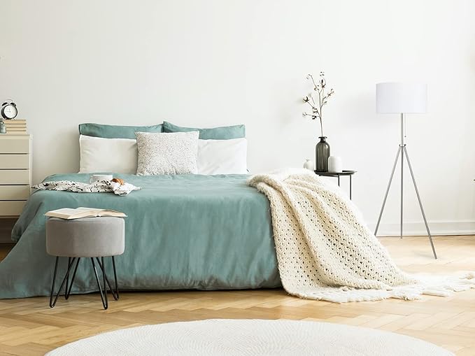 O’Bright Tripod Floor Lamp, Adjustable in Height, 100% Metal Body with Linen Drum Shade, E26 Socket, Bedside Lamp, Standing Light for Living Room, Bedroom, Office, Brushed Nickel