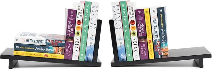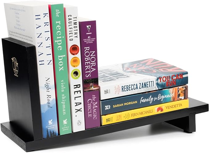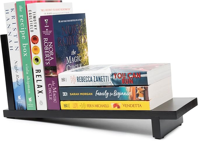 S&A WOODCRAFT Desktop Wood Bookshelf with Wooden Bookend, Desk Organizer Shelf and Display Rack with Book Ends, Storage Shelf Bookcase for Office, Home Decor, Kitchen Countertop, Black Pine
