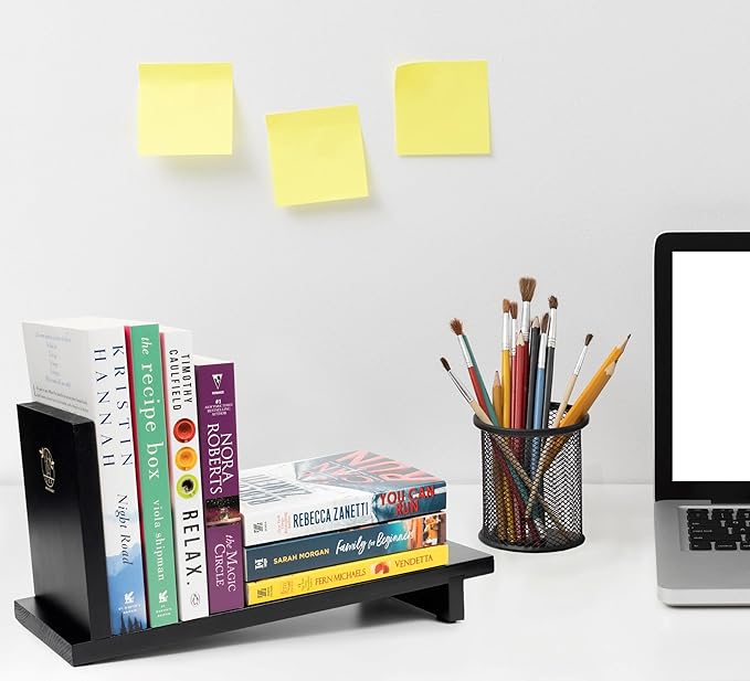 About This Keep Your Desk Organized: We combine a wooden cool bookend with a countertop organizer shelf to provide you...