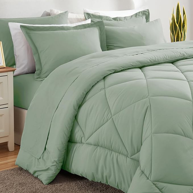 CozyLux Twin Comforter Set with Sheets 5 Pieces Bed in a Bag Sage Green All Season Bedding Sets with Comforter, Pillow Shams, Flat Sheet, Fitted Sheet and Pillowcases