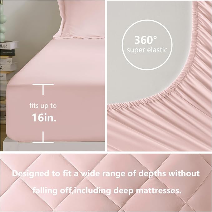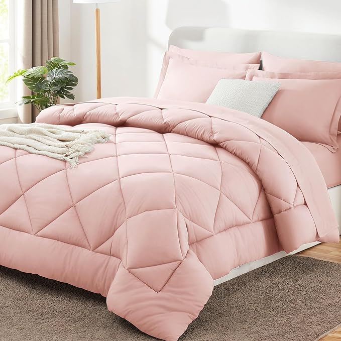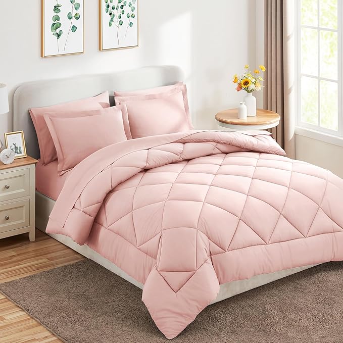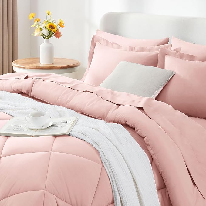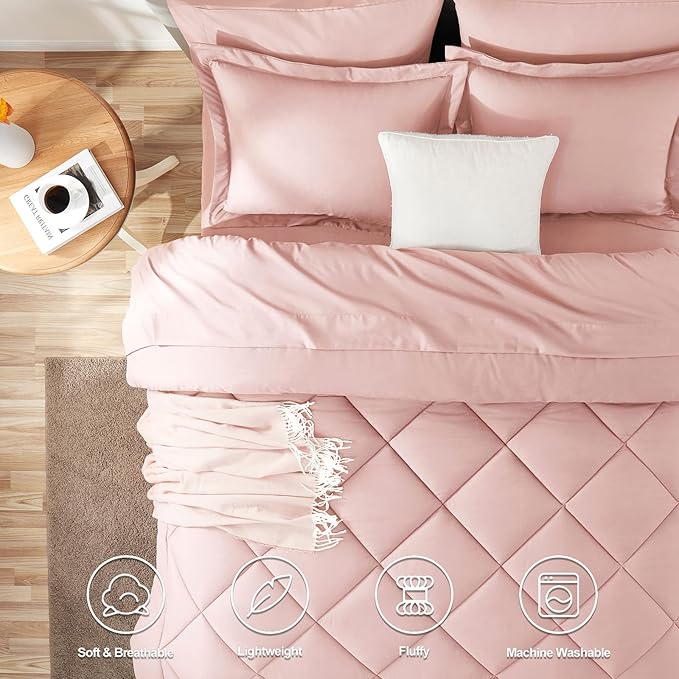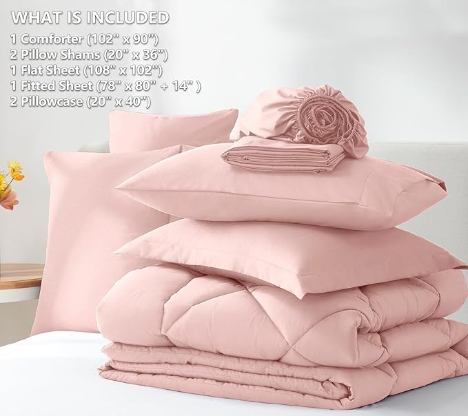 CozyLux King Comforter Set with Sheets 7 Pieces Bed in a Bag Pink All Season Bedding Sets with Comforter, Pillow Shams, Flat Sheet, Fitted Sheet and Pillowcases