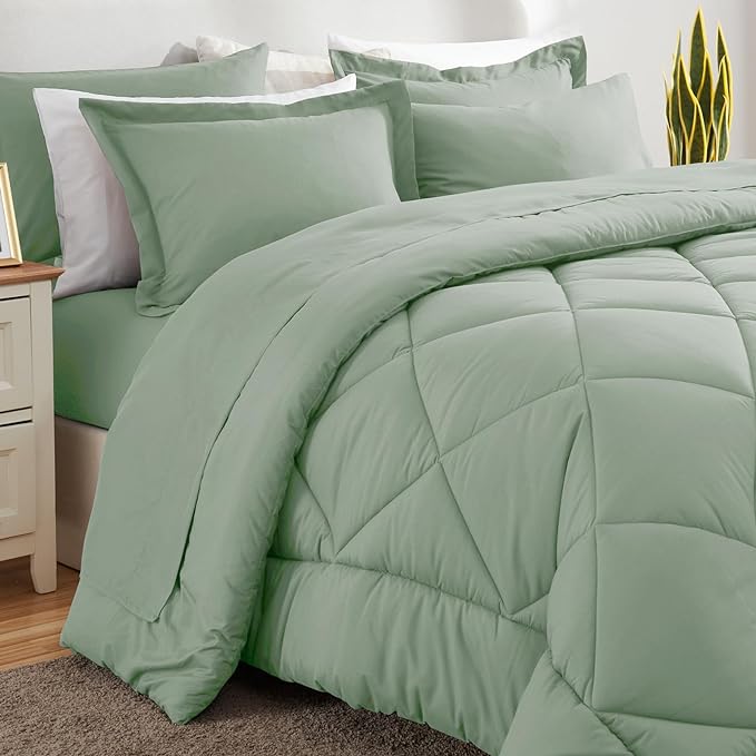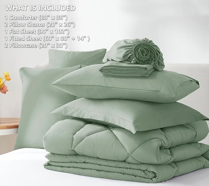 CozyLux Queen Comforter Set with Sheets 7 Pieces Bed in a Bag Sage Green All Season Bedding Sets with Comforter, Pillow Shams, Flat Sheet, Fitted Sheet and Pillowcases