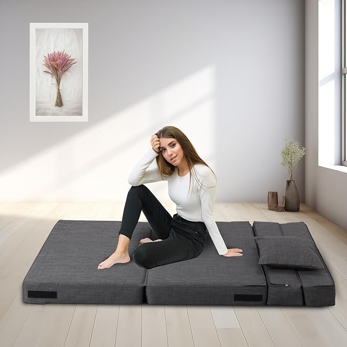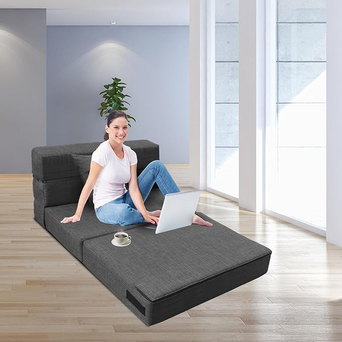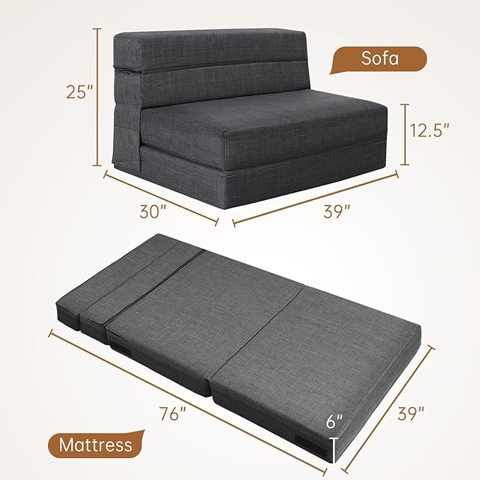Convertible Sleeper Chair Bed with Pillow Memory Foam Fold Sofa Bed Couch Futon Lazy for Living Room/Home Office/Guest Beds/Apartment/Upstairs Loft,Twin Size,Dark Gray