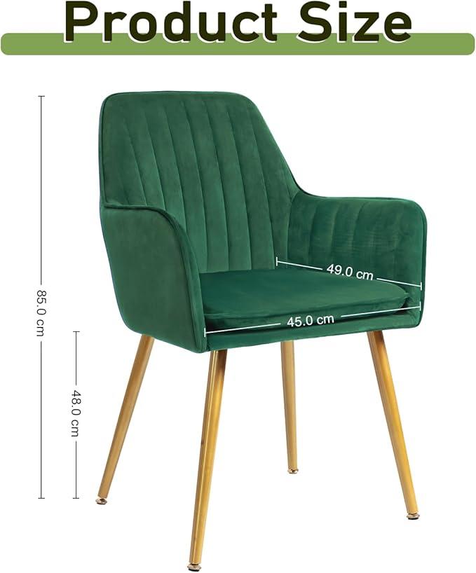 CangLong Furniture Modern Living Dining Room Accent Arm Chairs Club Guest with Gold Metal Legs, Set of 2, Green