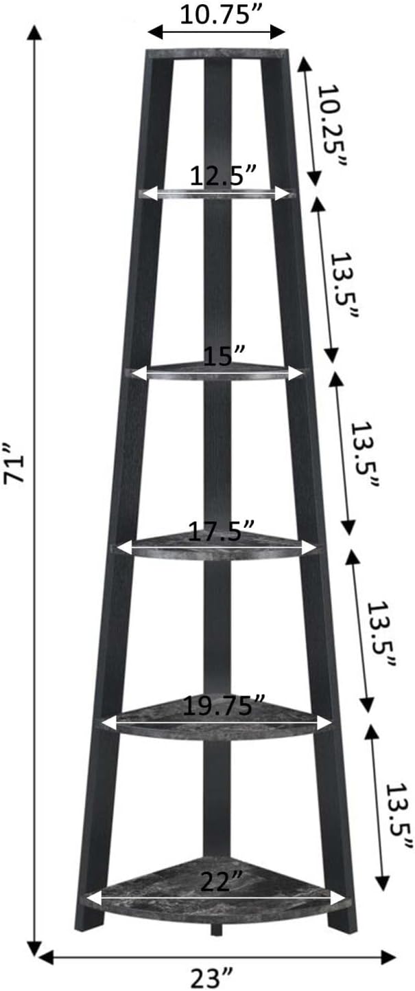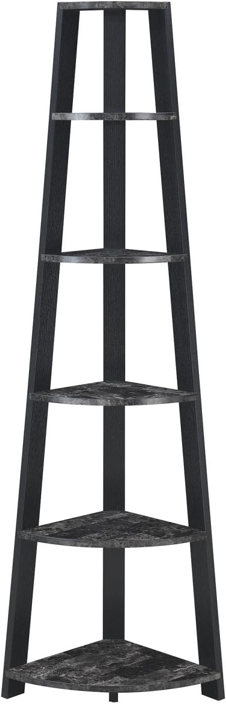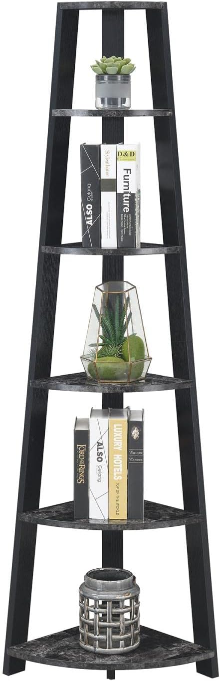 Convenience Concepts Newport 5-Tier Corner Bookshelf, Black Faux Marble/Black