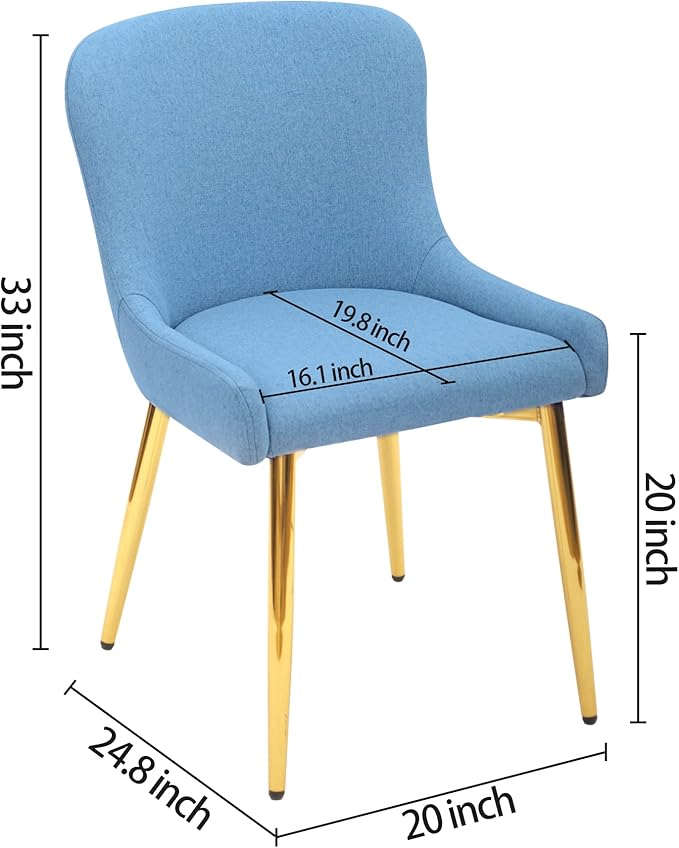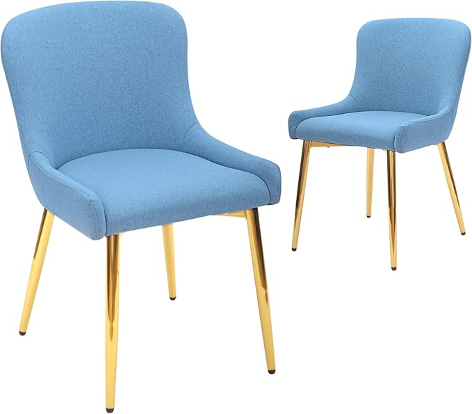 CangLong Mid Century Modern Leisure Upholstered Metal Legs for Kitchen Living Room Dining Chair,Set of 2, Blue
