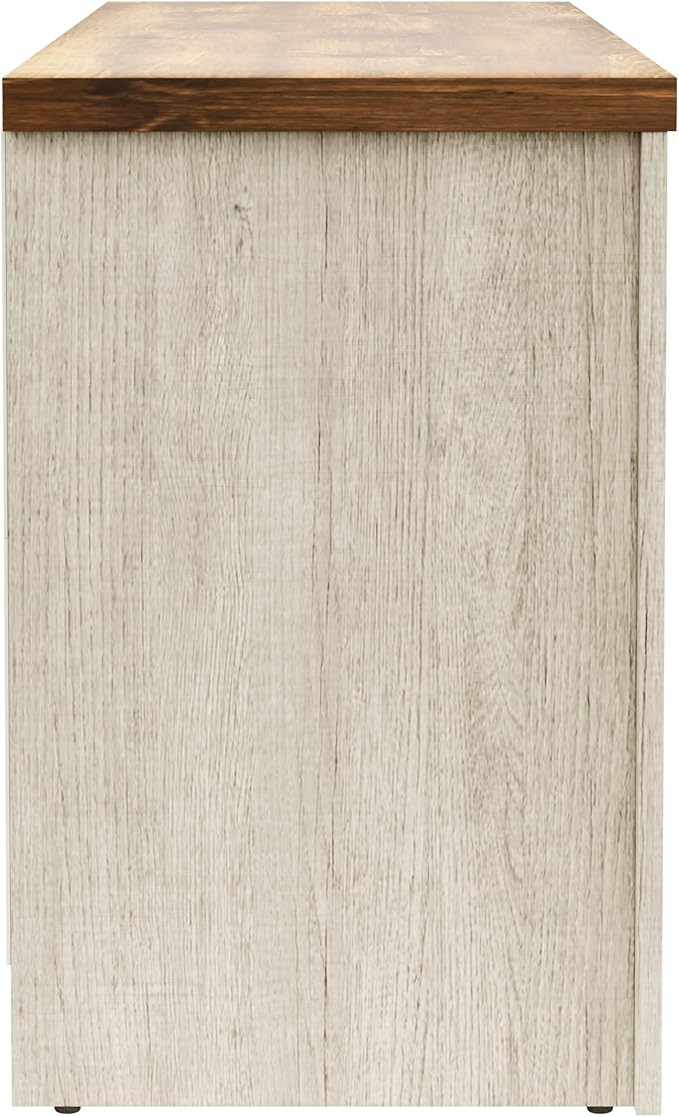 Hillsdale Columbus Wood Entertainment Console, 64 Inch, White Oak with Walnut Top