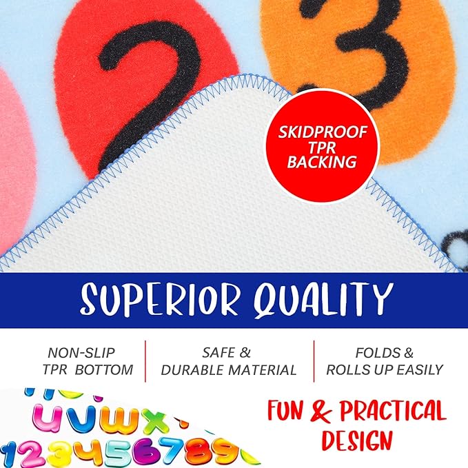 • Non Skid Backing Baby Play Rug: The bottom of the rug carpet is TPR backing, enhance the friction, make the carpet better grip the floor, so children can play comfortable while they learn through visual designs they will love.