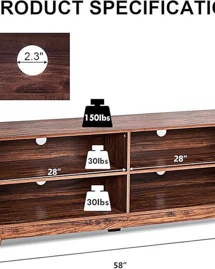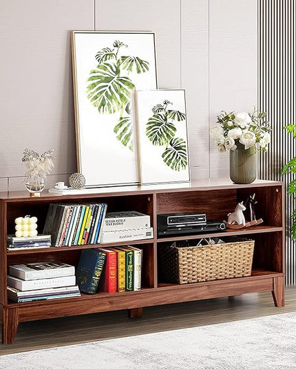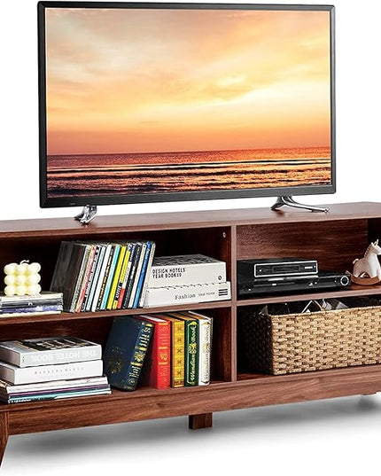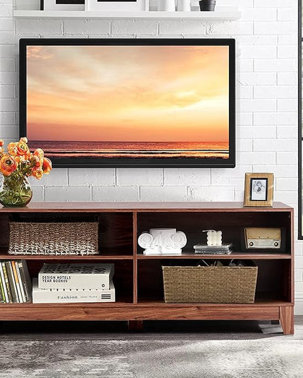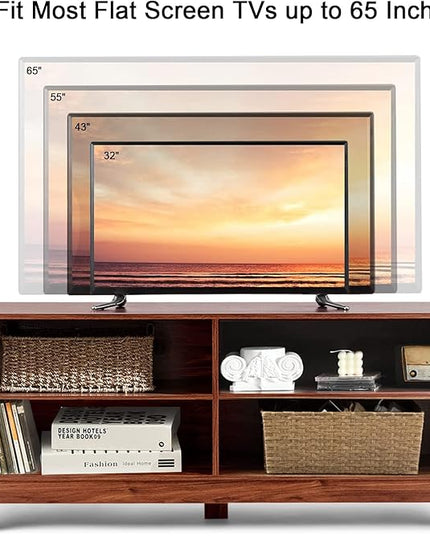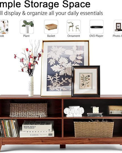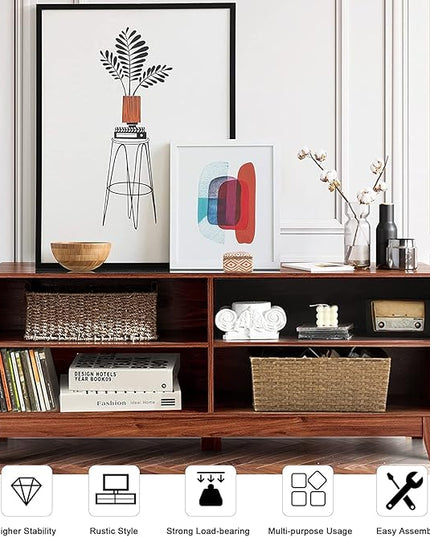 LUARANE TV Stand for TVs, up to 55 65 Inch, Console Table Cabinet MDF Storage Console, with 4 Open Storage Shelves, 4 Cord Management Holes, for Living Room and Entertainment Room (Coffee)