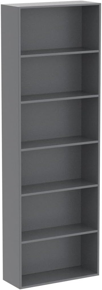 FOTOSOK 6-Tier Open Bookcase and Bookshelf, Freestanding Display Storage Shelves Tall Bookcase for Bedroom, Living Room and Office, Dark Gray