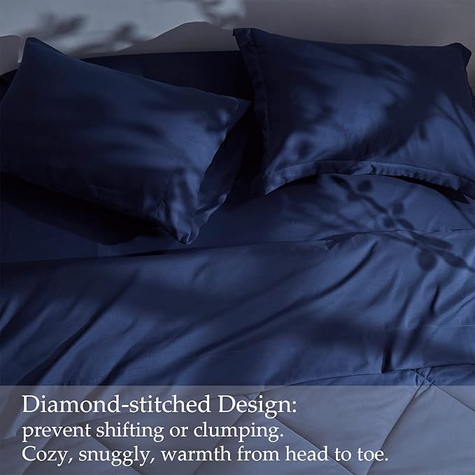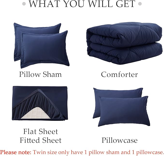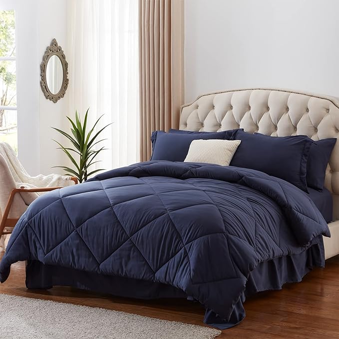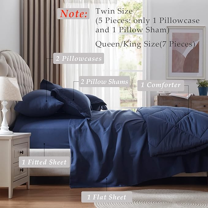NexHome King Bed in a Bag 7-Pieces Navy Comforter Sets with Comforter and Sheets Soft All Season Bedding Sets with Comforter, Pillow Shams, Flat Sheet, Fitted Sheet and Pillowcases
