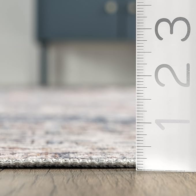 nuLOOM Drina Distressed Machine Washable Ultra Thin Area Rug, 3' x 5', Blue