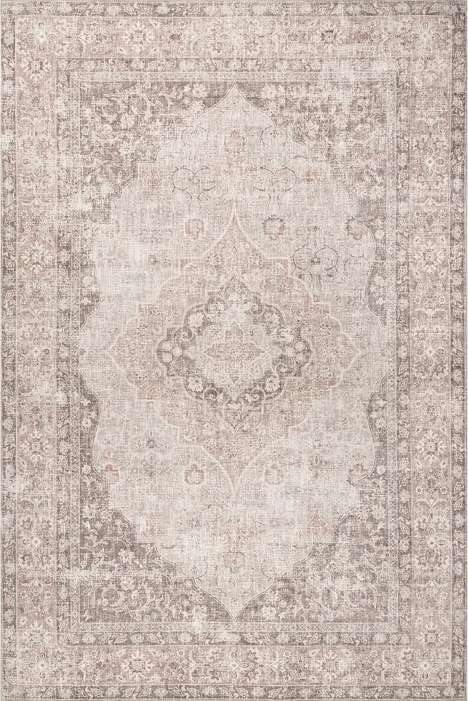 nuLOOM Elsa Floral Blossom Machine Washable Ultra Thin Area Rug, 8' x 10', Beige