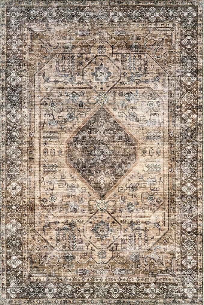 nuLOOM Devin Machine Washable Vintage Medallion Ultra Thin Area Rug, 8' x 10', Light Brown