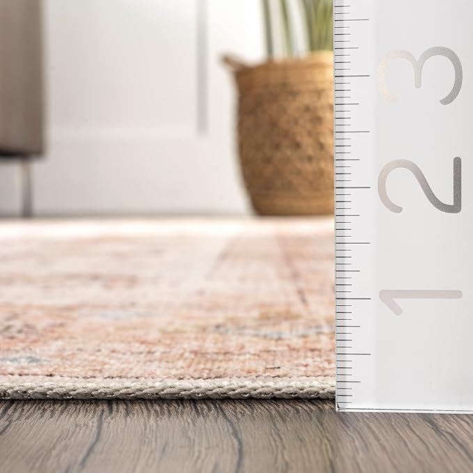 nuLOOM Dawson Machine Washable Distressed Medallion Ultra Thin Area Rug, 6' x 9', Peach