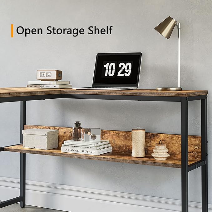 CubiCubi L Shaped Desk, 55.1 inch Corner Computer Desk with Storage Shelves, Home Office Desk with Bookshelf for Writing Gaming Study, Rustic Brown