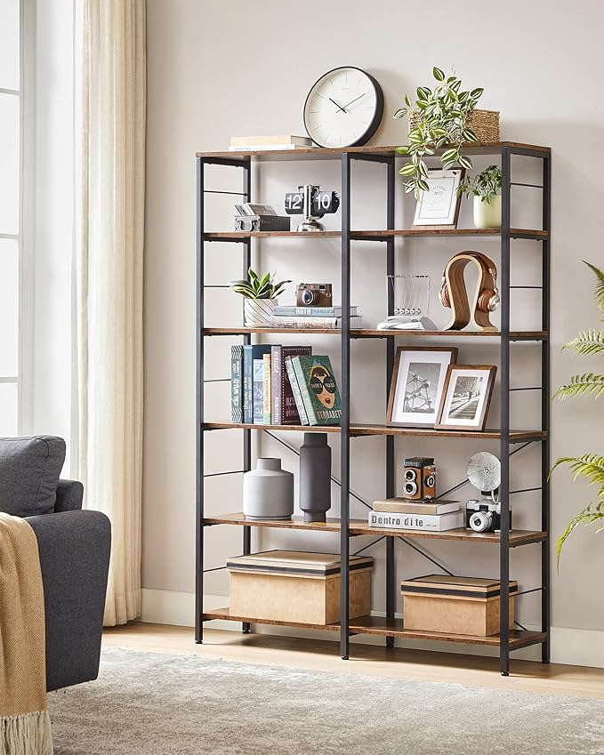VASAGLE 6-Tier Tall Bookshelf, Bookcase, Large Metal Shelf, 11.8 x 47.2 x 67.9 Inches, for Living Room, Kitchen, Pantry, Study, Home Office, Rustic Brown and Black ULLS114B01