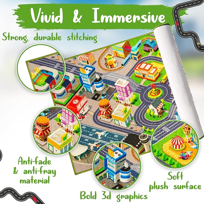 Kids Carpet Playmat City Life 3D Playroom Rug | 30 x 60 Inch Extra Large Toddler Activity Mat for Race Cars & Toys | Playroom Rug Makes a Fun Educational Gift Idea for Boys & Girls