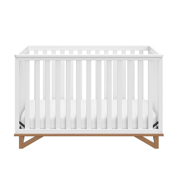 Storkcraft Santa Monica 5-in-1 Convertible Crib (White with Vintage Driftwood) – GREENGUARD Gold Certified, Modern Design, Two-Tone Baby Crib, Converts to Toddler Bed, Daybed and Full-Size Bed