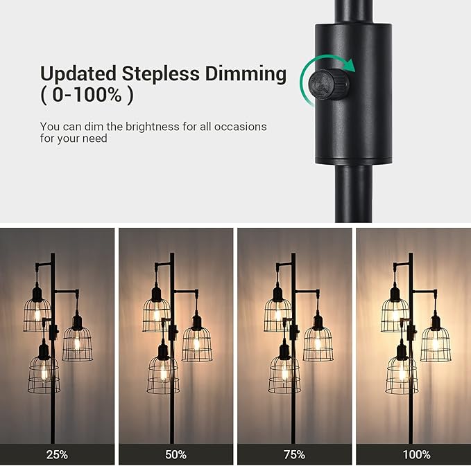About This [Stepless Dimming( 0-100% )] The farmhouse floor lamp for living room is fully Stepless Dimmable, Just simply twist...