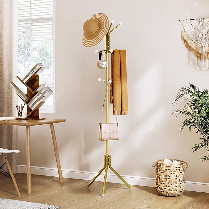 Hoctieon 4 Tier Tree Bookshelf, 4 Shelf Bookcase, Modern Book Storage, Free Standing Tree Bookcase, Utility Organizer Shelves for Home Office, Living Room, Bedroom, Rustic Brown